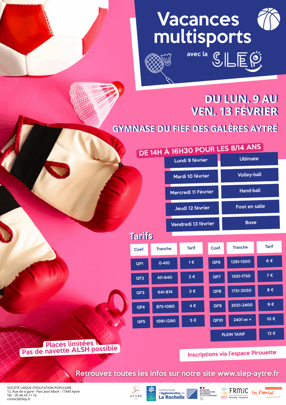 Rendez-vous au Gymnase du fief des galères tous les après-midis, du 9 au 13 février 2026, de 14h à 16h30, avec Ali, notre intervenant sportif.