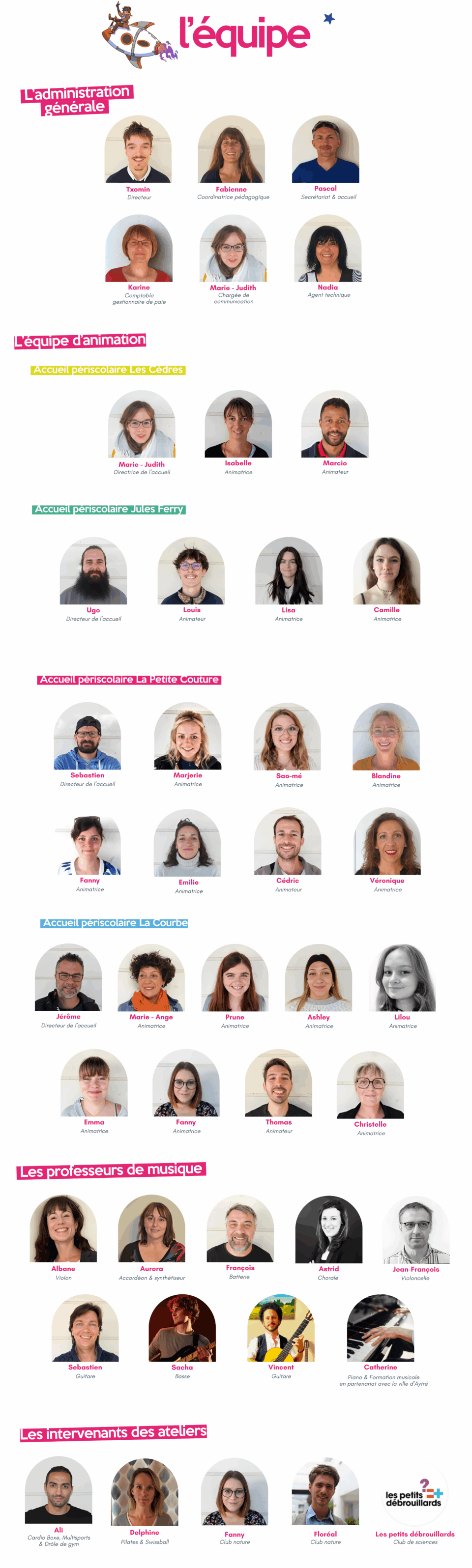 De nouvelles propositions voient le jour: un club nature pour renouer avec l’environnement, une activité multisports pour tous les âges, une chorale pour faire vibrer les voix et les cœurs, et l’arrivée de nouveaux visages parmi nos animateurs et professeurs de musique, porteurs d’énergie et de créativité.