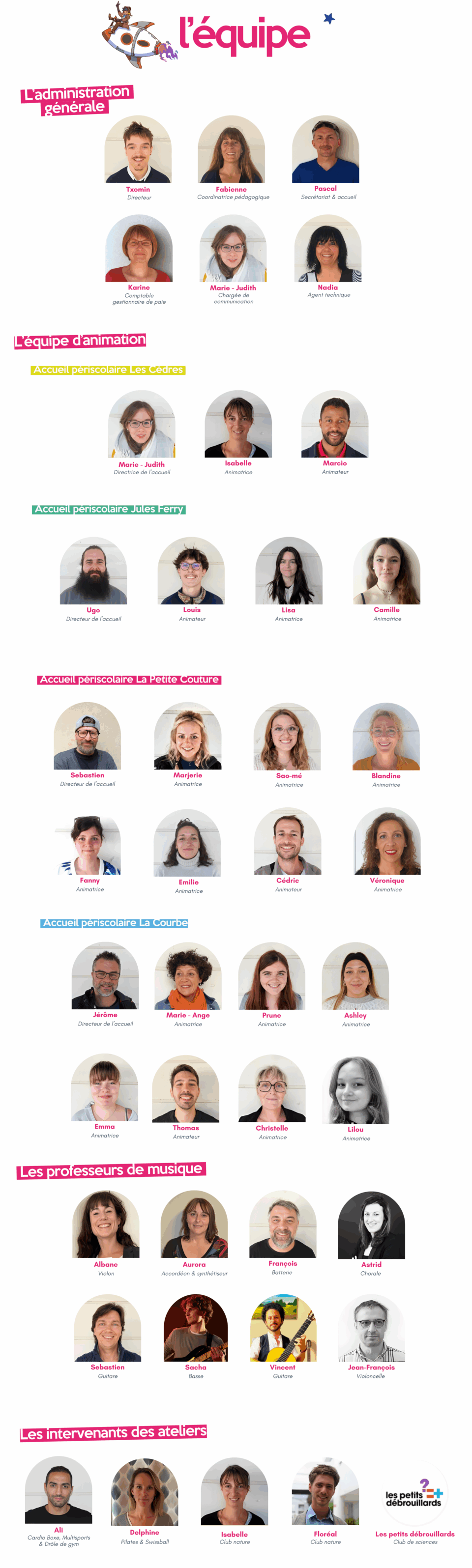 De nouvelles propositions voient le jour: un club nature pour renouer avec l’environnement, une activité multisports pour tous les âges, une chorale pour faire vibrer les voix et les cœurs, et l’arrivée de nouveaux visages parmi nos animateurs et professeurs de musique, porteurs d’énergie et de créativité.